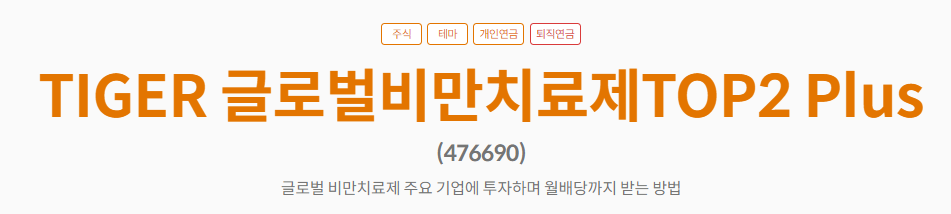 | 상품명 | TIGER 글로벌비만치료제TOP2 Plus |
